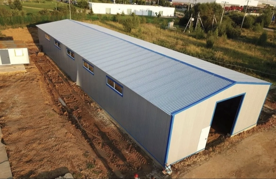 Сроки зависят от размера и сложности объекта: небольшой ангар (300–500 м²) можно возвести за 2–4 недели, крупный склад или цех (2000+ м²) — за 2–3 месяца.